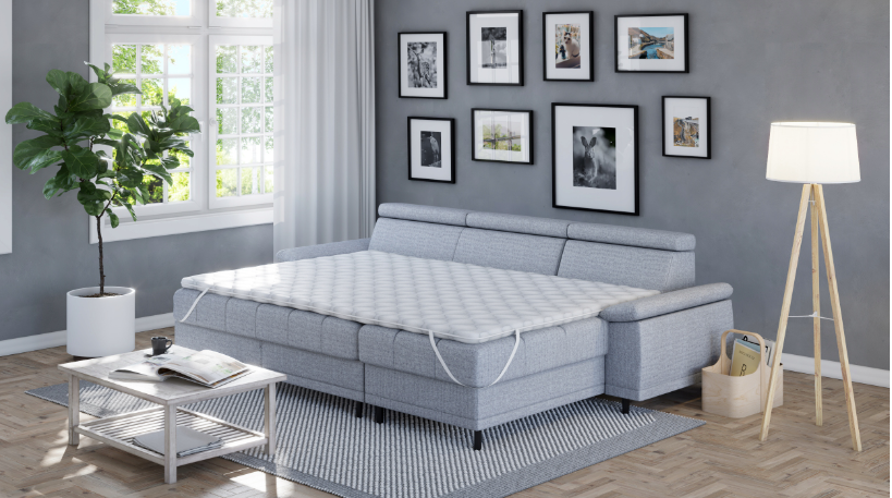 Užtiesalas puikiai tinka tiek ant čiužinio, tiek ant sofos, išlyginant nelygumus ir sukuriant tolygų, patogų miego paviršių.