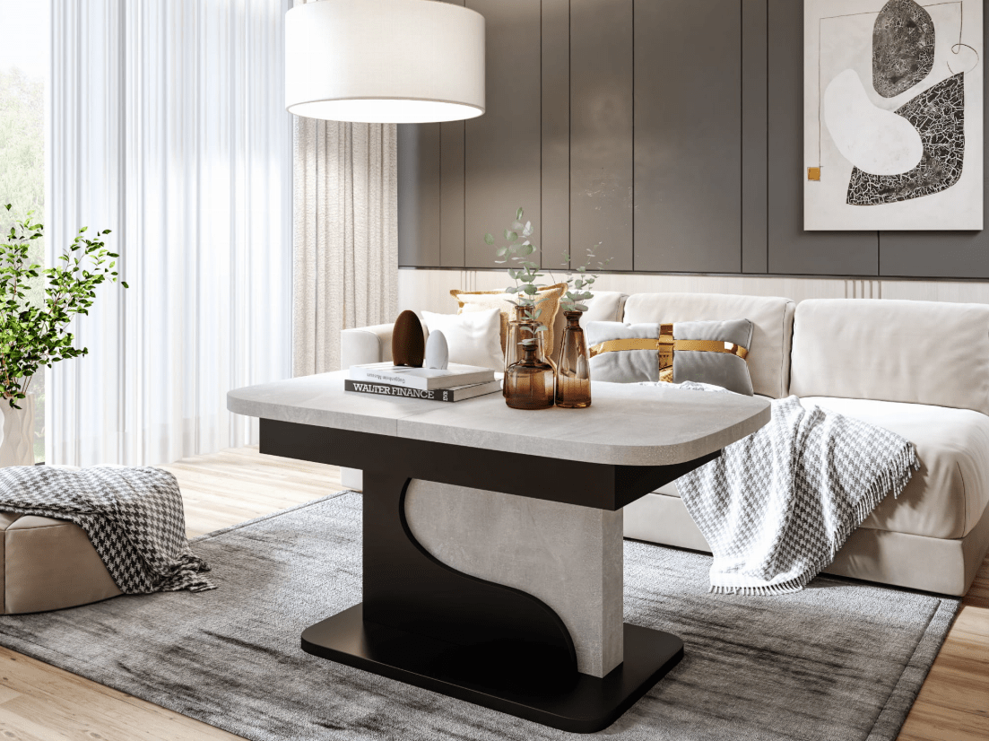 Staliukas pagamintas iš 18 mm storio dvipusės medžio drožlių plokštės. Stalviršis storintas iki 36 mm. Šiai medžiagai būdingas didesnis atsparumas mechaniniams pažeidimams, įbrėžimams ir aukštos temperatūros poveikiui. Karšta taurė, padėta tiesiai ant stalo, ar išsiliejęs alkoholis jam nepakenks. Stalą transformerį labai lengva prižiūrėti ir valyti. Valymui tinka, bet kuri neagresyvi priežiūros priemonė skirta laminuotai plokštei.
